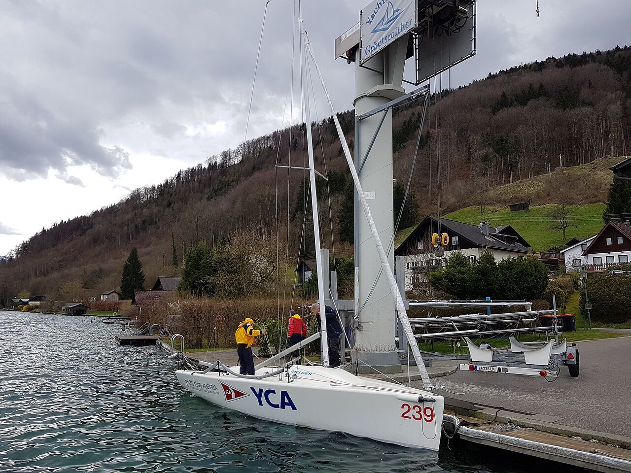 Vier Vereinsmitglieder trafen sich beim neuen Standort Firma Gebetsroither, wo die Melges ihre neue Heimat/Boje gefunden hat. Parkplatz und sanitäre Anlagen sind vorhanden. Trotz Wetterkapriolen war um 15 Uhr alles geschafft und das Schiff an ihrem neuen Platz festgemacht. Buchungen sind ab sofort, nach einer Schiffseinweisung möglich.