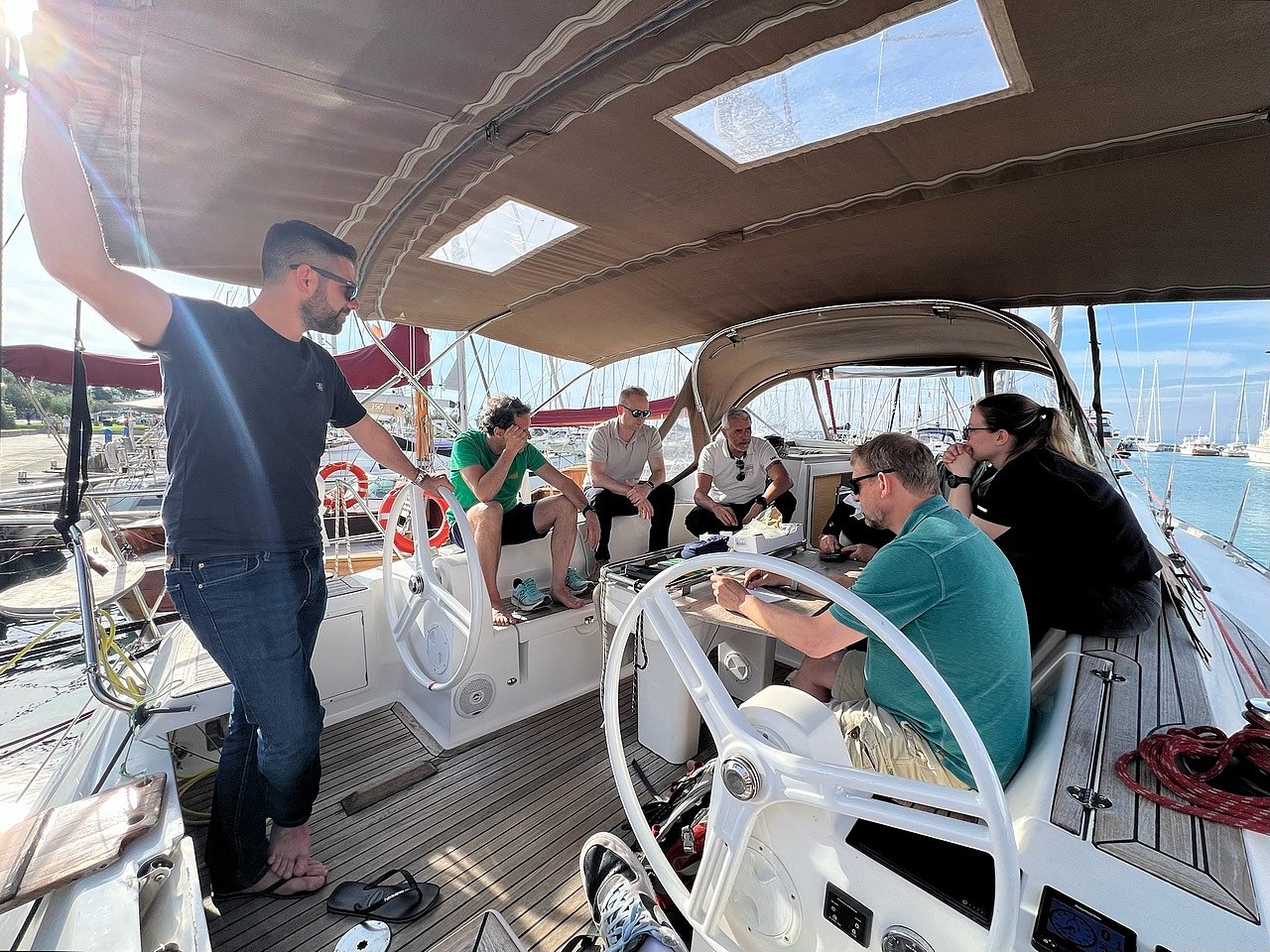 Der Kurs deckte alles ab, was das (angehende) Seglerherz höher schlagen lässt: Bootskunde, Wetter, Navigation, Seerecht und Vieles mehr. Die Inhalte waren fundiert und vielfältig: Vom Aufbau eines Segelbootes über die Windrichtungen, Strömungen und deren Einfluss auf die Route, bis hin zu Peilungen und Kartenarbeit – alles wurde praxisnah vermittelt.