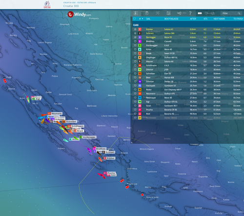 Das Feld ist mittlerweile extrem weit auseinandergezogen, während die Spitzengruppe nur mehr rund um die 30 Seemeilen bis zum Ziel hat, benötigen die Schlusslichter aktuell rechnerisch noch knapp 130 Seemeilen bis zur Zielmarke!
