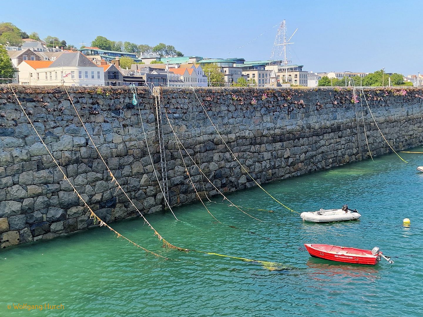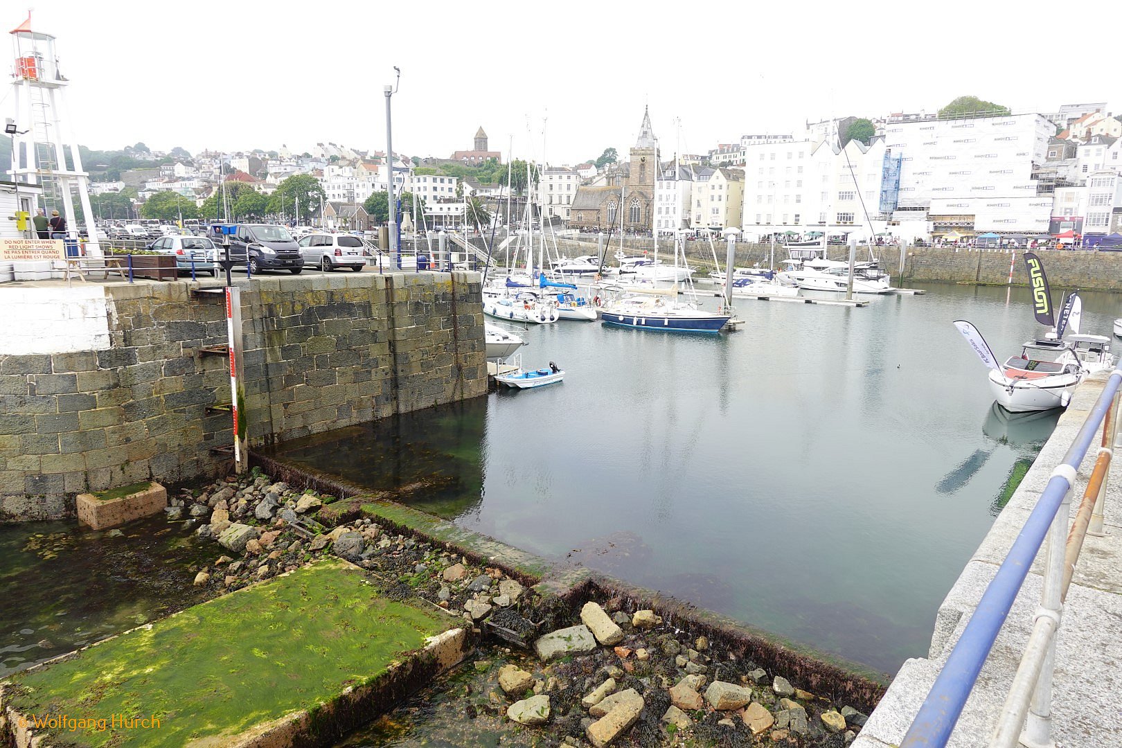 Unser nächstes Ziel war St.Peter Port auf Guernsey, hier lagen wir in der zentral gelegenen Victoria Marina. Sehenswert in St.Peter Port ist jedenfalls Castle Cornet, eine mächtige Festungsanlage vor der Stadt . Die Anlage mit ihren Museen ist zu besichtigen waren wir leider zu spät dran, um 17 Uhr ist Schluss. Das Anlegebier war schuld.