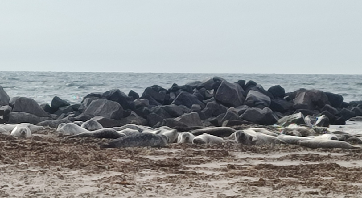 Mitte Juni beginnen die Trottellummenküken von der hohe Klippe zu springen, ein beeindruckendes Schauspiel, dem wir zeitlich vermutlich sogar beiwohnen können. Ab Herbst wird die Düne zur Kinderstube für die Kegelrobben.