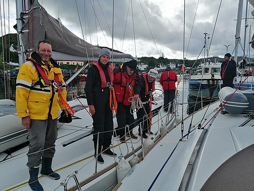 Wir – die fünf Teilnehmer der der Crew Wien-NÖ-Burgenland – hängen nun wieder mit der „Explorer of Sleat“ an der Startboje.
